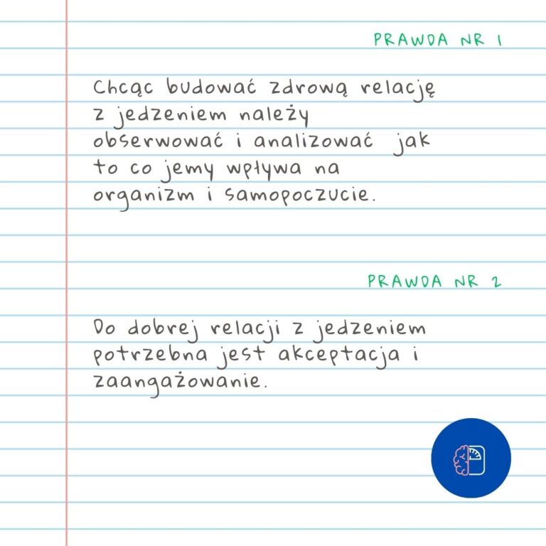 Chcąc budować zdrową relację z jedzeniem należy  obserwować i analizować  jak to co jemy wpływa na organizm i samopoczucie.