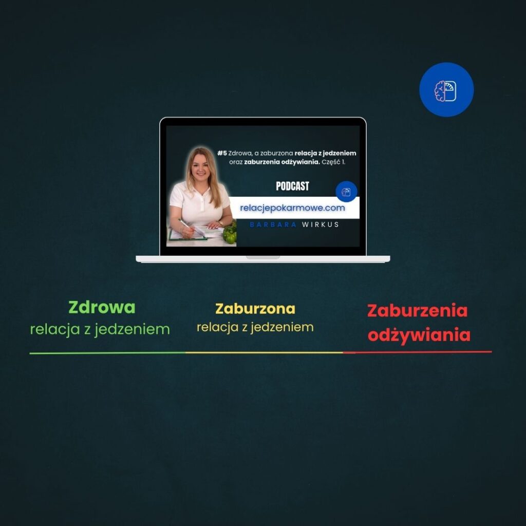Jak widzisz na początku znajduje się zdrowa relacja z jedzeniem, później znajdują się obszary zaburzonej relacji z jedzeniem, a strefa ostatnia – to zaburzenia odżywienia.